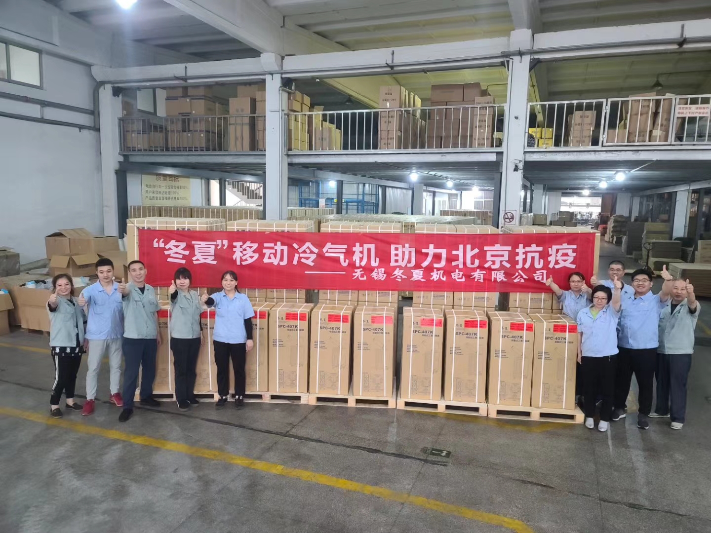 隨著夏季的來(lái)臨,北京的高溫天氣給防疫工作帶來(lái)了新的挑戰(zhàn),奮戰(zhàn)在抗疫前線的醫(yī)護(hù)人員無(wú)時(shí)不面臨著中暑的危機(jī),面對(duì)這一刻不容緩的嚴(yán)峻形勢(shì),無(wú)錫冬夏首批捐助北京抗疫的移動(dòng)冷氣機(jī)連夜發(fā)出,愿在這炎炎夏日我們的冷氣機(jī)能夠幫助戶外工作的醫(yī)護(hù)人員消暑降溫,避免高溫中暑的發(fā)生,助力北京抗疫,為醫(yī)護(hù)人員解決高溫難題。