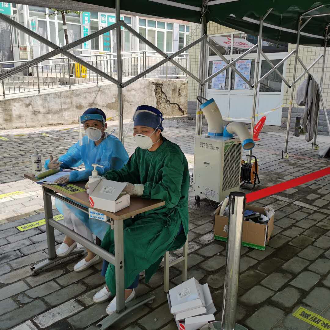無(wú)錫冬夏機(jī)電有限公司生產(chǎn)的移動(dòng)冷氣機(jī),有著無(wú)需安裝、移動(dòng)便捷的優(yōu)點(diǎn),能夠立刻投入到檢測(cè)現(xiàn)場(chǎng)使用,給醫(yī)護(hù)人員進(jìn)行消暑降溫。接下來(lái),我們也將繼續(xù)與前線的醫(yī)護(hù)人員共進(jìn)退,全力做好降溫防暑售后工作,也愿大家萬(wàn)眾一心,打倒病毒,共渡難關(guān)!